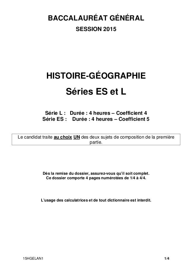 Les Sujets Du Bac 2015 En L Es Et S Blog Histoire Geo