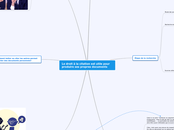 Le droit à la citation est utile pour produire ses propres documents. Droit à la citation Étape de la recherche Arguments dautorité Comparer les idées Comment imiter ou citer les autres permet de créer des documents person. Pourquoi le droit à la citation est- Carte Mentale.